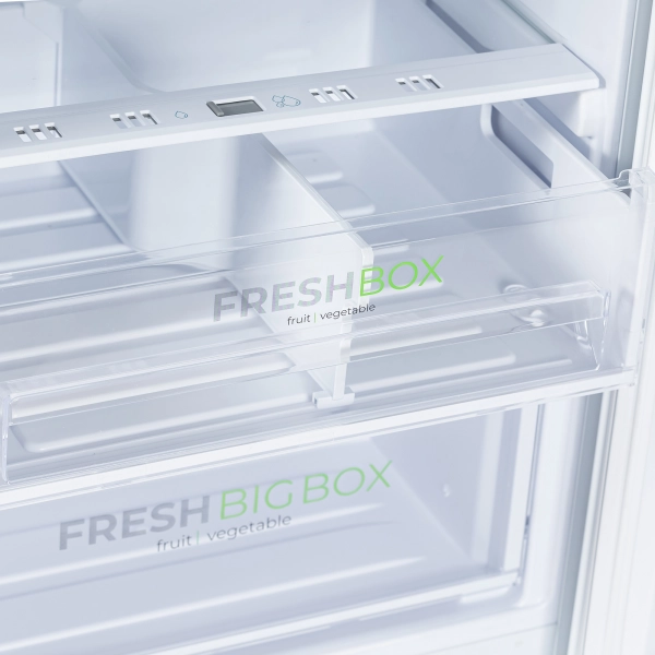 • Ящик для овощей и фруктов с разделителем. Продукты дольше сохраняют свежесть и витамины. Разделитель позволяет хранить разные виды овощей и фруктов отдельно.