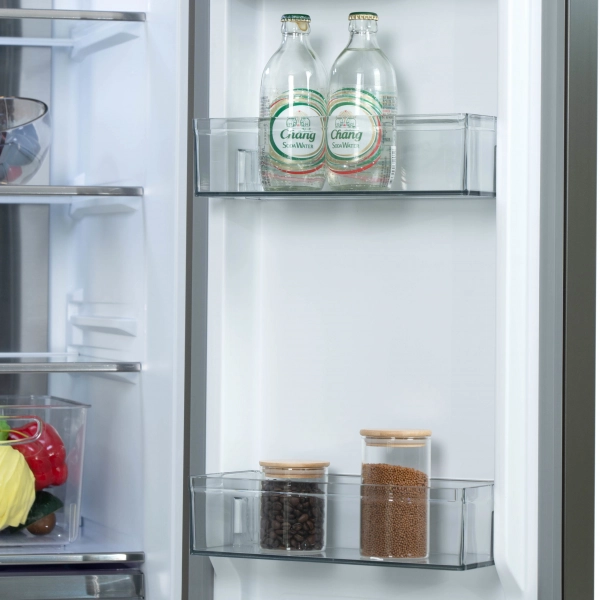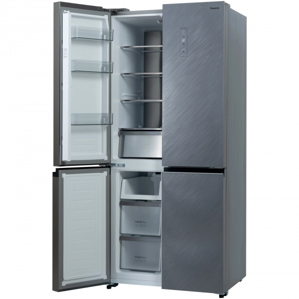Многокамерный холодильник с дверьми из текстурированного серого стекла