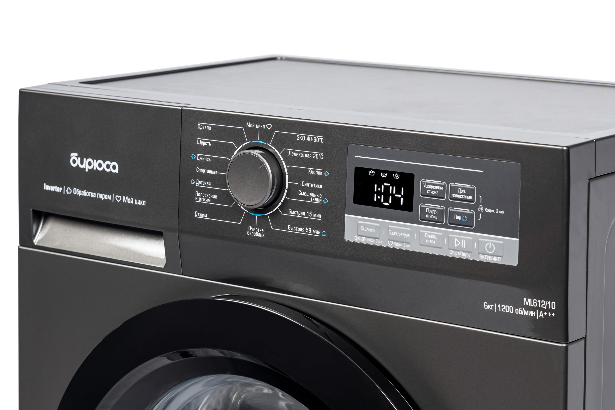 ✅ LED-индикатор визуально демонстрирует этапы стирки и выбранные настройки, а также сигнализирует о завершении процесса.
