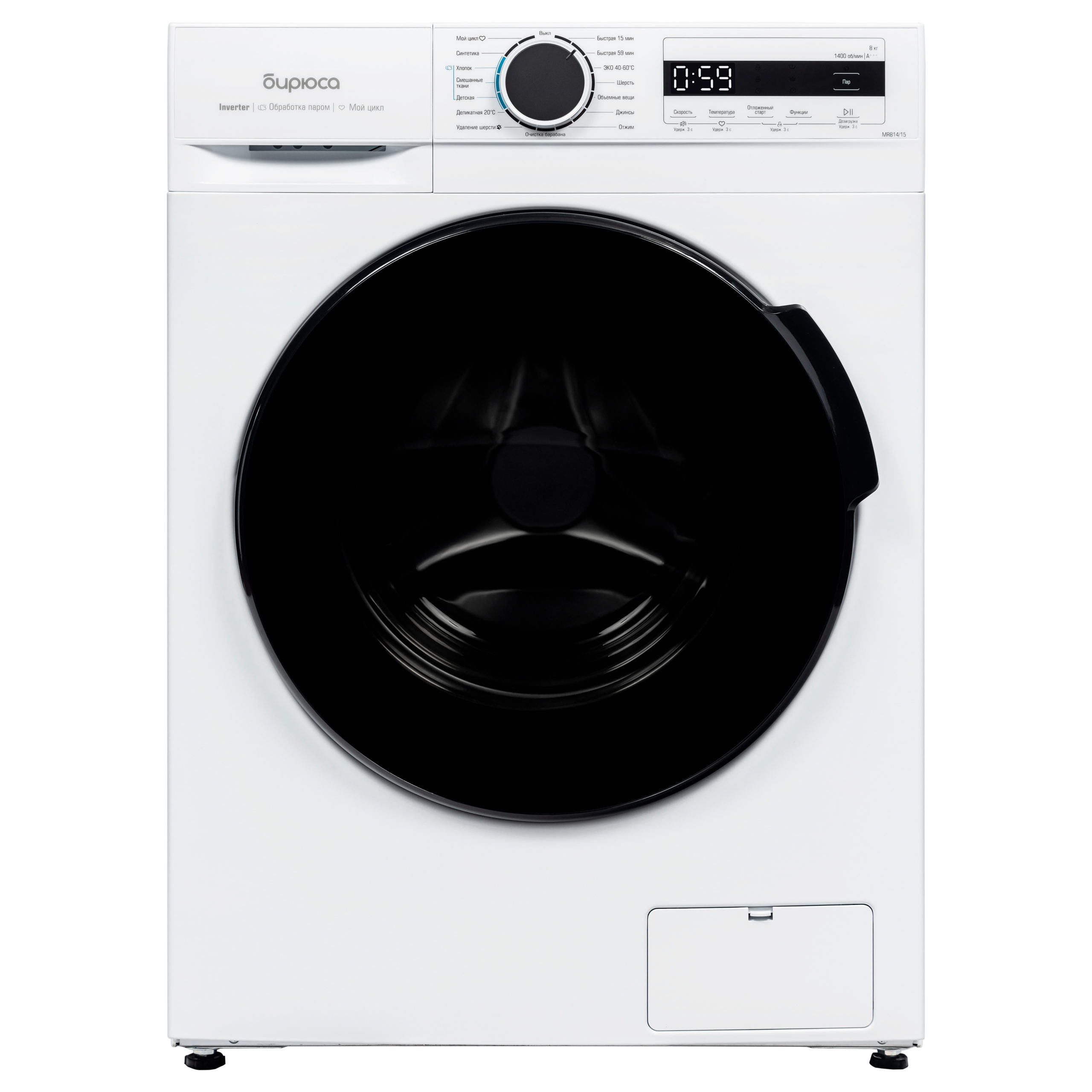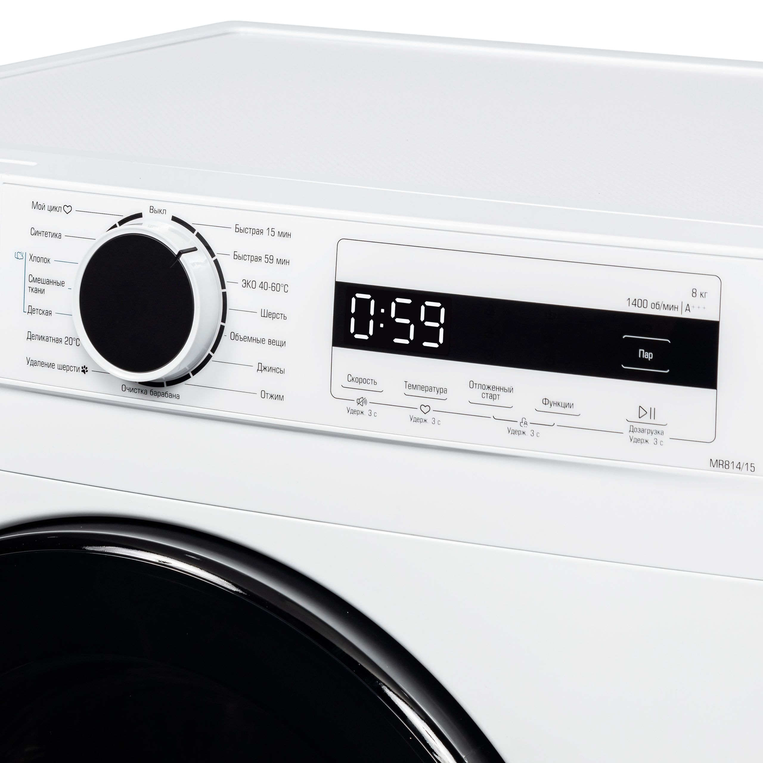 Хлопок, Деликатная 20 ºC, Синтетика, Смешанные ткани, Шерсть, Быстрая 59/15 мин, Отжим |