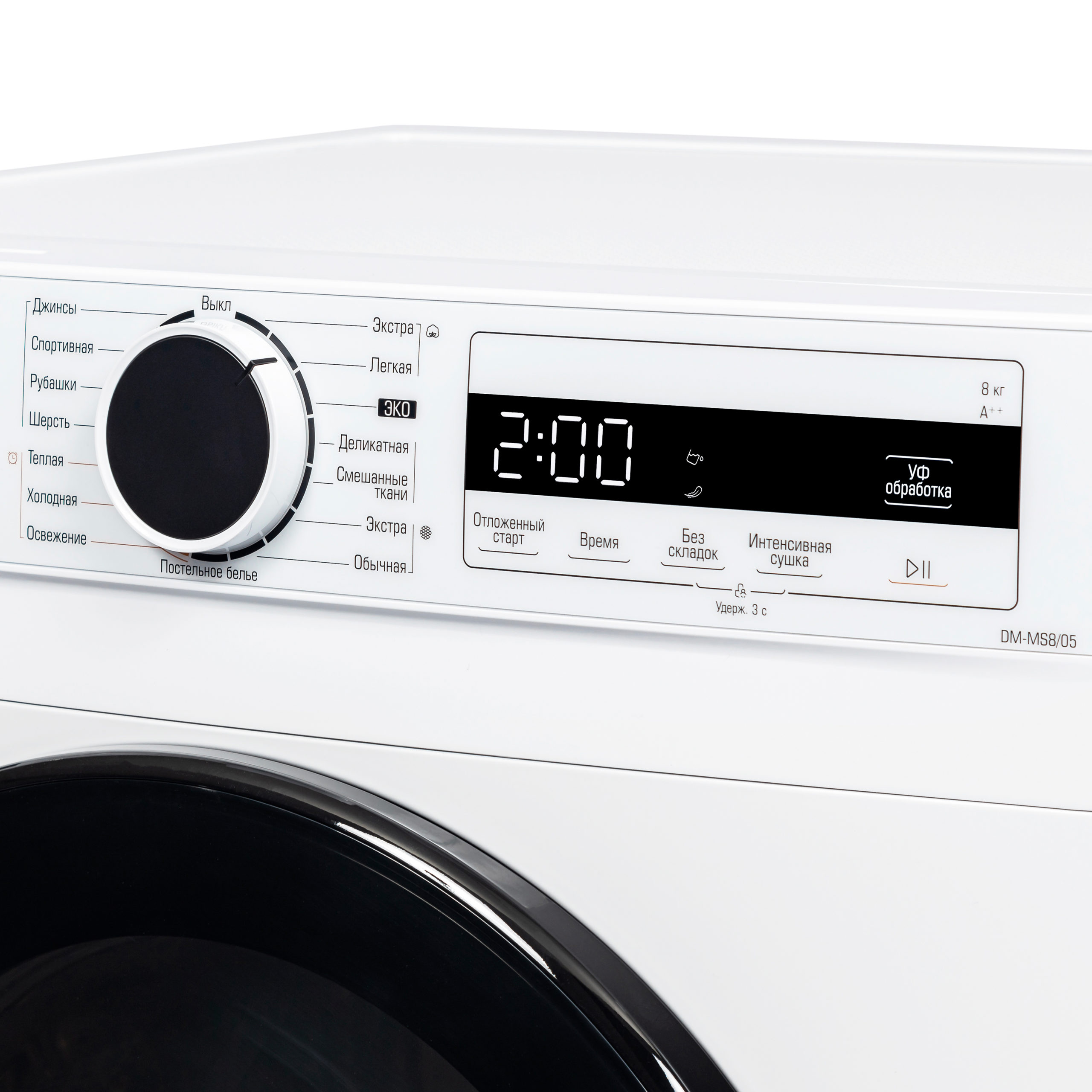 Без складок, Интенсивная сушка, Отложенный старт, Блокировка от детей, УФ-обработка, Подсветка барабана |