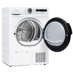 Сушильная машина с тепловым насосом и УФ-обработкой: бережная сушка до 8 кг белья, 15 программ, режим «без складок», LED-подсветка, полка для обуви и шерсти, защита от микробов и вирусов.